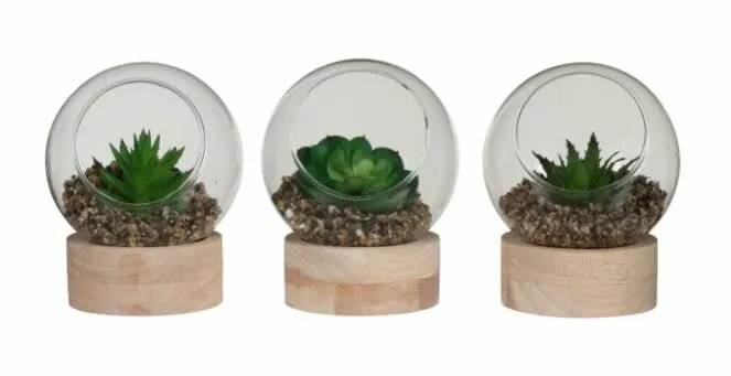 Mica Succulent Plant in Glass on a Wooden Feet Assorted – by piece